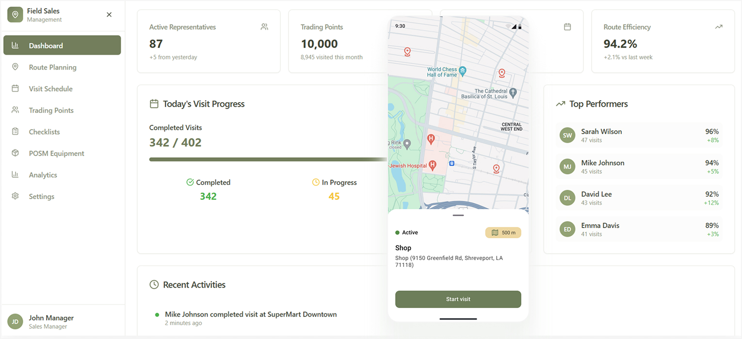 Мы создали систему с веб-панелью и мобильным приложением для планирования визитов, учёта POSM и выполнения чек-листов с фото и геометками.