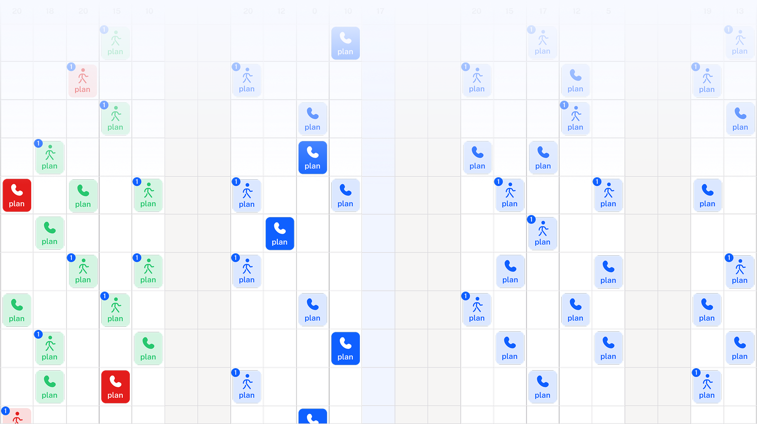 Дистрибьютор может корректировать автоматически созданный план: добавлять срочные звонки, переносить контакты, устанавливать напоминания о повторных звонках.