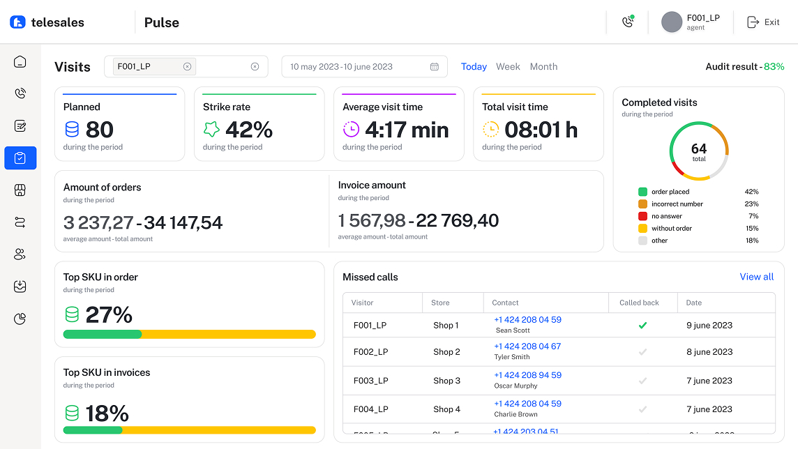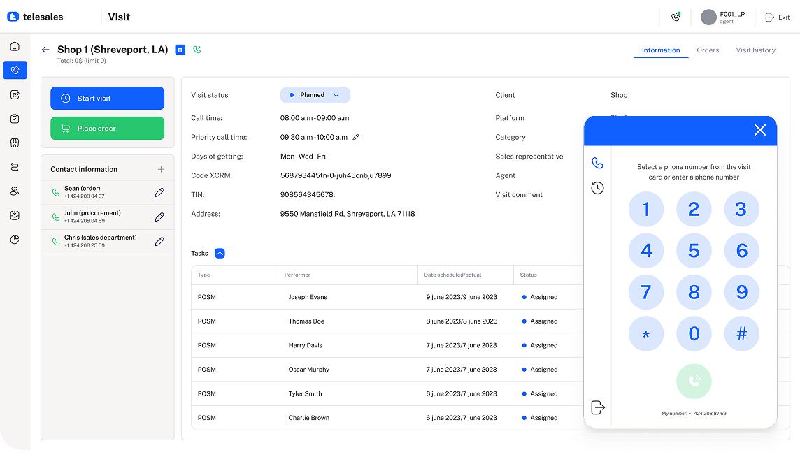 Click-to-call позволяет мгновенно связаться с любой торговой точкой. Во время звонка дистрибьютор видит текущие остатки товаров в магазине, динамику продаж по категориям, статус плановых поставок, новинки для информирования, а также историю предыдущих взаимодействий.